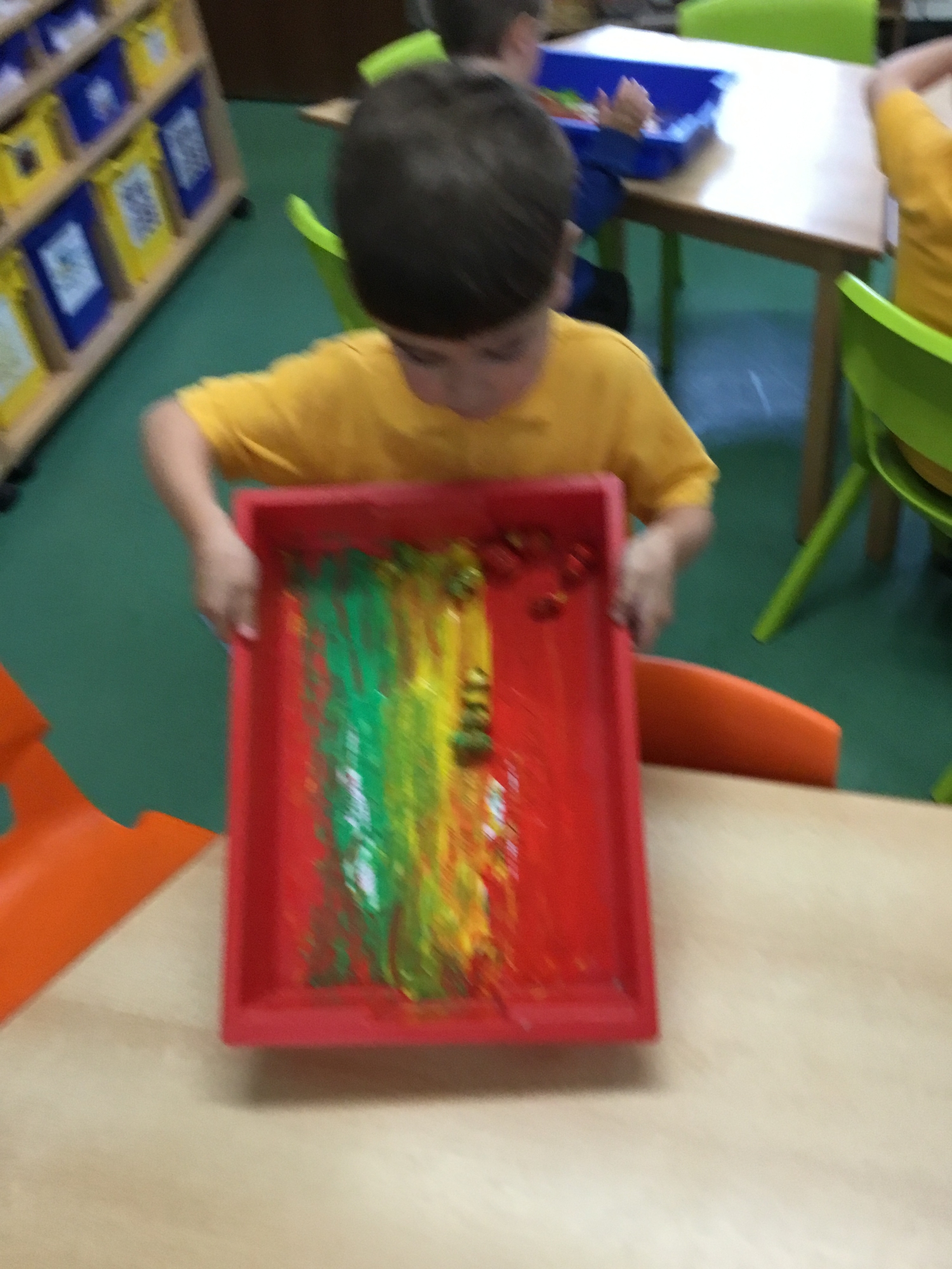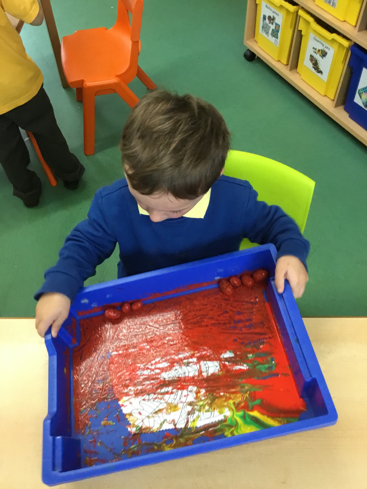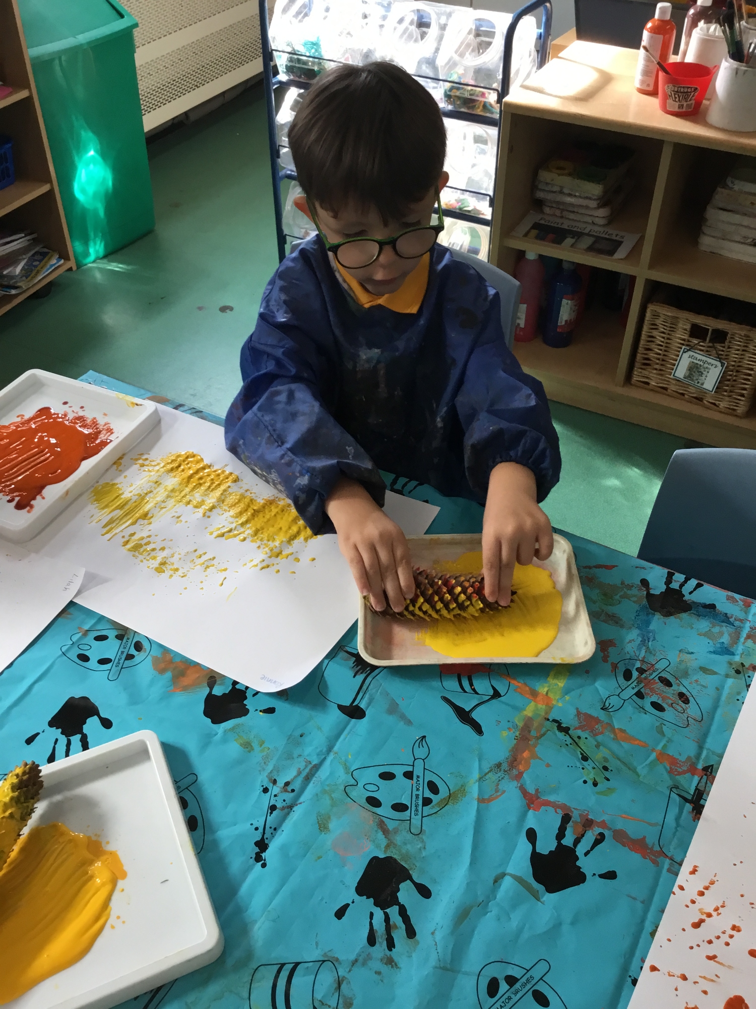 Colour Creations: Children learn to identify and name colours, experiment with mixing primary colours to create new shades, and use colour to express ideas and feelings. They also develop basic skills in painting, drawing, and printing, while learning to talk about their own artwork and that of others.